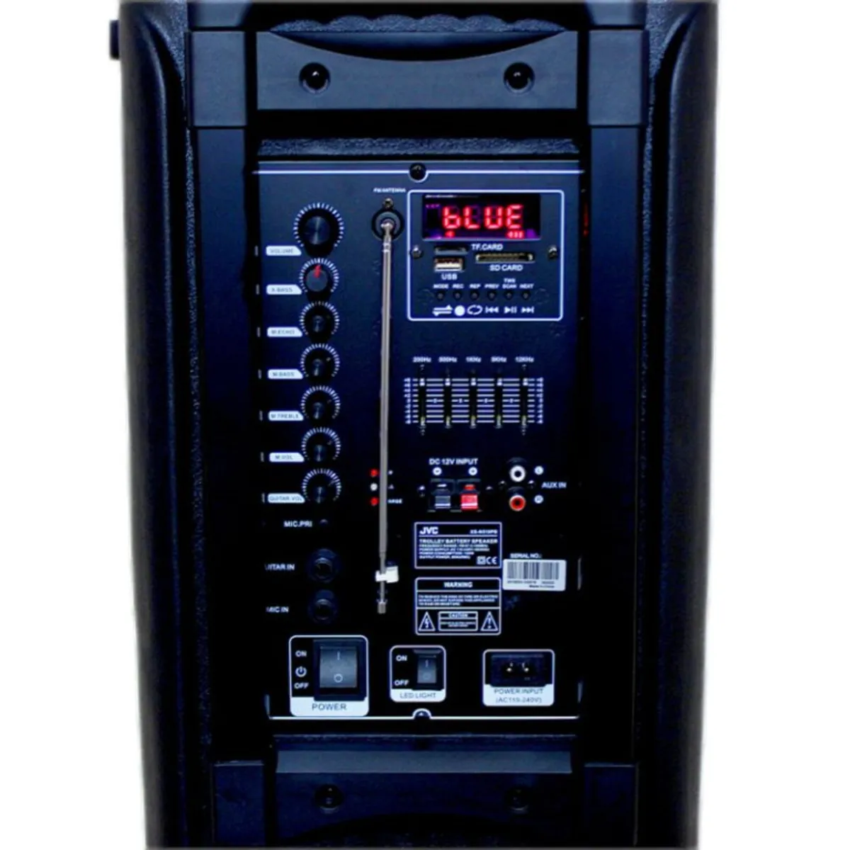 ابعاد 400x360x750 میلیمتر قابلیت پشتیبانی از کارت حافظه تا ظرفیت 32 گیگابایت منبع تغذیه برق 22 ولت شهری باطری خودرو و موتورسیکلت ادابتور 12 ولت رابطها Bluetooth, پورت USB, جک 6.3 میلیمتری, شیار کارت حافظه وزن 14500 گرم اقلام همراه بلندگو دوعدد میکروفون بی سیم با کیفیت و برد بلند ریموت کنترل به همراه 2 عدد باطری نیم قلم کابل پاور اتصال به برق 220 جهت شارژ باطری کابل رابط اتصال به باطری خودرو یا برق 12 ولت دفترچه راهنما