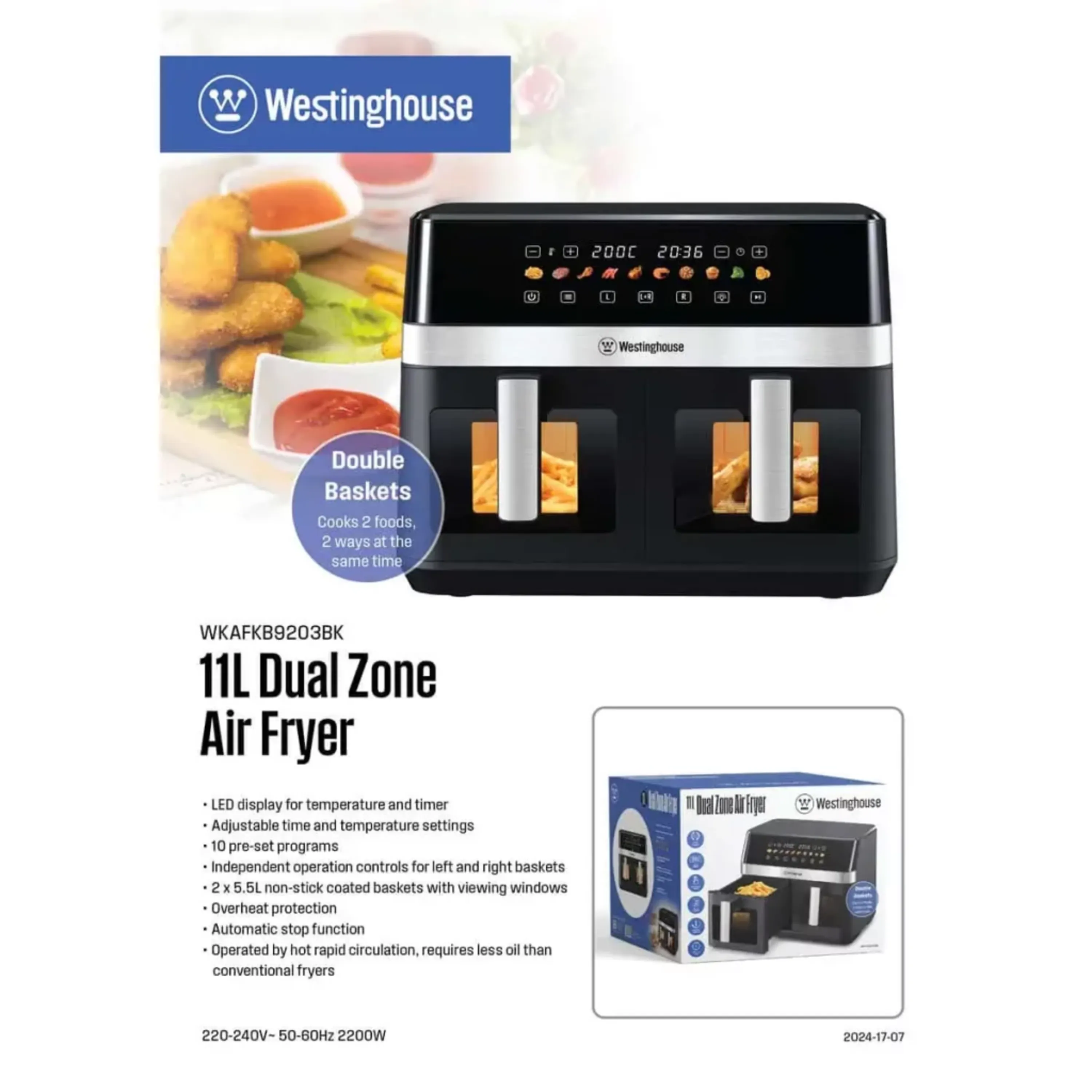 مشخصات کلیدی نوع بدون روغن ظرفیت 11 لیتر مشخصات کلی برند وستینگهاوس آمریکا توان 2200 وات جنس بدنه پلاستیک بهداشتی رنگ مشکی طول کابل 1 متر کشور سازنده آمریکا، مونتاژ چین جنس کاسه آلومینیوم با پوشش تفلون یخزدایی دارد روغن گیر سینی روغن گیر قابلیت خشک کردن میوه و گوشت دارد جوجه گردان ندارد تعداد برنامه های پیشفرض 10 برنامه سبد چرخان ندارد دنر ساز ندارد گرم کردن مجدد دارد نوع سرخ کن رژیمی (بدون روغن) دامنه دما 60 الی 200 درجه ظرفیت سرخ کن 11 لیتر گرم نگهدارنده دارد سیستم بو زدایی دارد قابلیت تنظیم دستی زمان دارد هشدار اتمام کار دارد تایمر دارد قابلیت تنظیم دستی دما دارد قابلیت خشک کردن سبزی دارد جنس قسمت داخلی فلزی نوع پنل دیجیتالی
