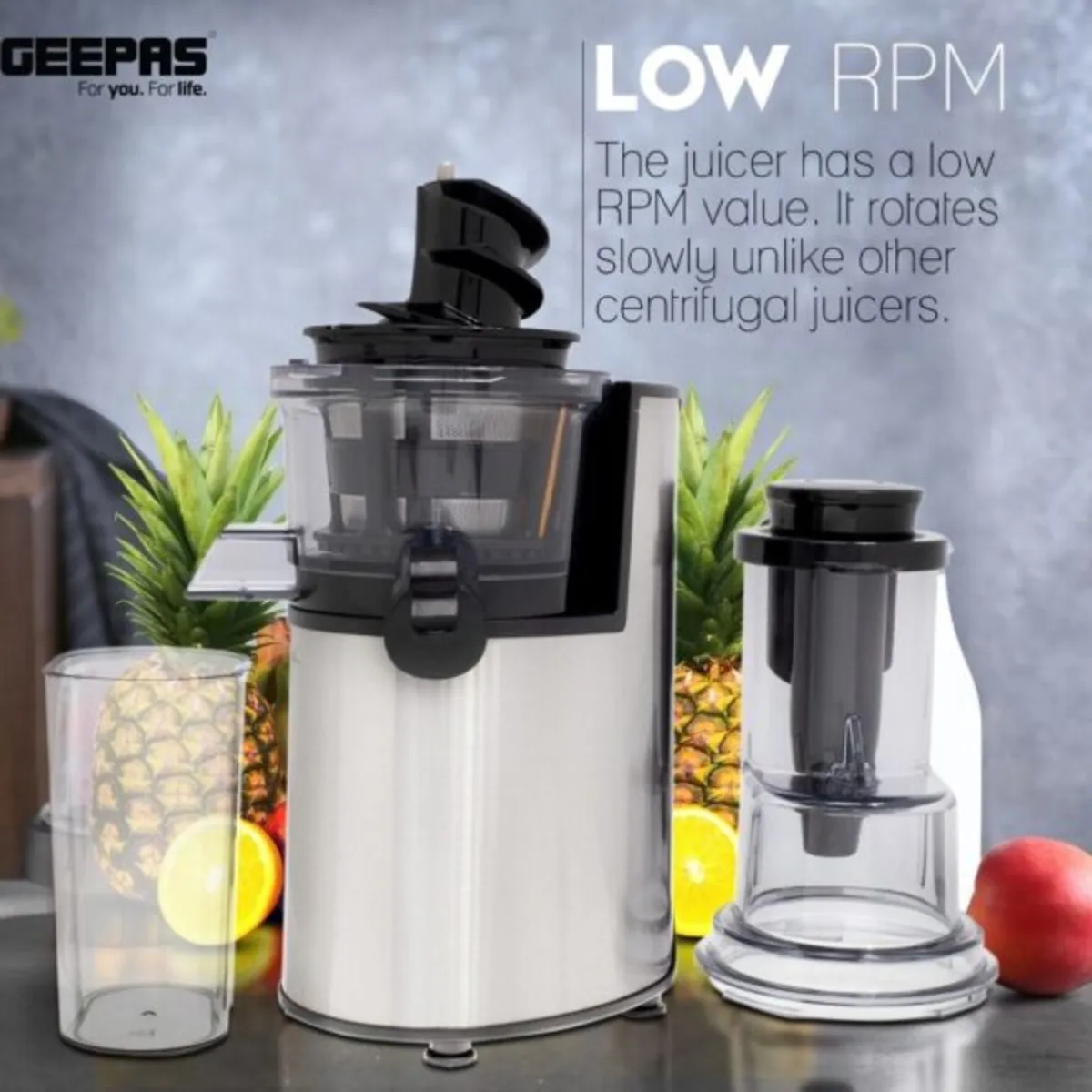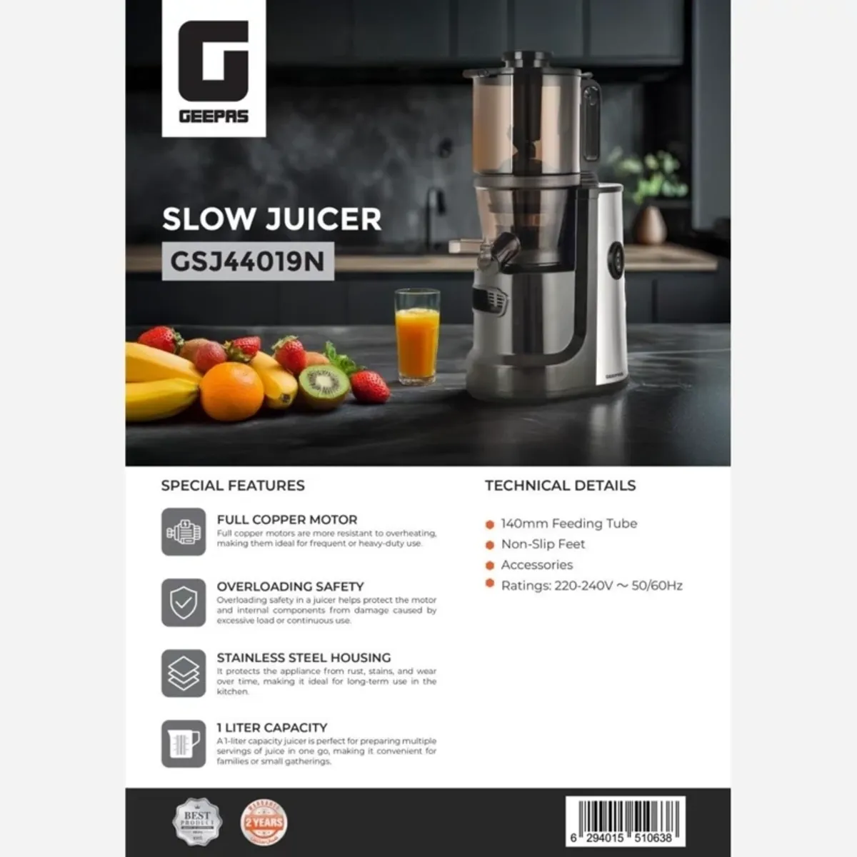 اگر به دنبال یک عصارهگیر قدرتمند، با دوام و کاربرپسند هستید، عصارهگیر جی پاس مدل GSG 44019N انتخابی عالی برای خانه یا محل کار شماست. این دستگاه با طراحی حرفهای و تکنولوژی slow juicing، حداکثر میزان آبگیری از میوهها و سبزیجات را با حفظ مواد مغذی و طعم طبیعی فراهم میکند. ⭐ ویژگیهای خاص ✅ موتور تمام مسی (FULL COPPER MOTOR) مجهز به موتور قدرتمند تمام مسی برای عملکرد بالا و مقاومت در برابر گرمای زیاد. این ویژگی باعث افزایش طول عمر دستگاه و مناسب بودن آن برای استفادههای سنگین و روزانه میشود. ⚠️ ایمنی در برابر بار اضافی (OVERLOADING SAFETY) سیستم محافظ هوشمند از موتور در برابر فشار یا بار اضافی محافظت کرده و از آسیب به قطعات داخلی جلوگیری میکند. 🧱 بدنه استیل ضدزنگ (STAINLESS STEEL HOUSING) طراحی بدنه با استیل ضد زنگ، مقاوم در برابر خوردگی، لکه و زنگزدگی. مناسب برای استفاده طولانیمدت در آشپزخانههای مدرن. 🥤 ظرفیت 1 لیتری (1 LITER CAPACITY) مخزن با ظرفیت 1 لیتر برای تهیه چند لیوان آبمیوه در یک نوبت. ایدهآل برای خانوادهها یا مهمانیهای کوچک. ⚙️ جزئیات فنی 🔸 لوله تغذیه بزرگ 140 میلیمتری: قابلیت ورود میوههای کامل بدون نیاز به خرد کردن زیاد 🔸 پایههای ضدلغزش (Non-Slip Feet): حفظ ثبات و ایمنی هنگام استفاده 🔸 اقلام همراه (Accessories): فیلتر، برس تمیزکننده و پارچ مخصوص آبمیوه 🔸 ولتاژ کاری: 220-240V ~ 50/60Hz: سازگار با برق شهری ایران 🎁 گارانتی و خدمات پس از فروش ✔ این محصول با 18 ماه گارانتی شرکتی معتبر عرضه میشود. خیال شما از بابت کیفیت و خدمات پس از فروش آسوده خواهد بود. چرا GEEPAS GSG 44019N انتخاب مناسبی است؟ حفظ ارزش غذایی آبمیوهها با تکنولوژی پرس سرد طراحی شیک و بدنه مقاوم گنجایش مناسب برای خانواده قیمت اقتصادی نسبت به کیفیت عالی