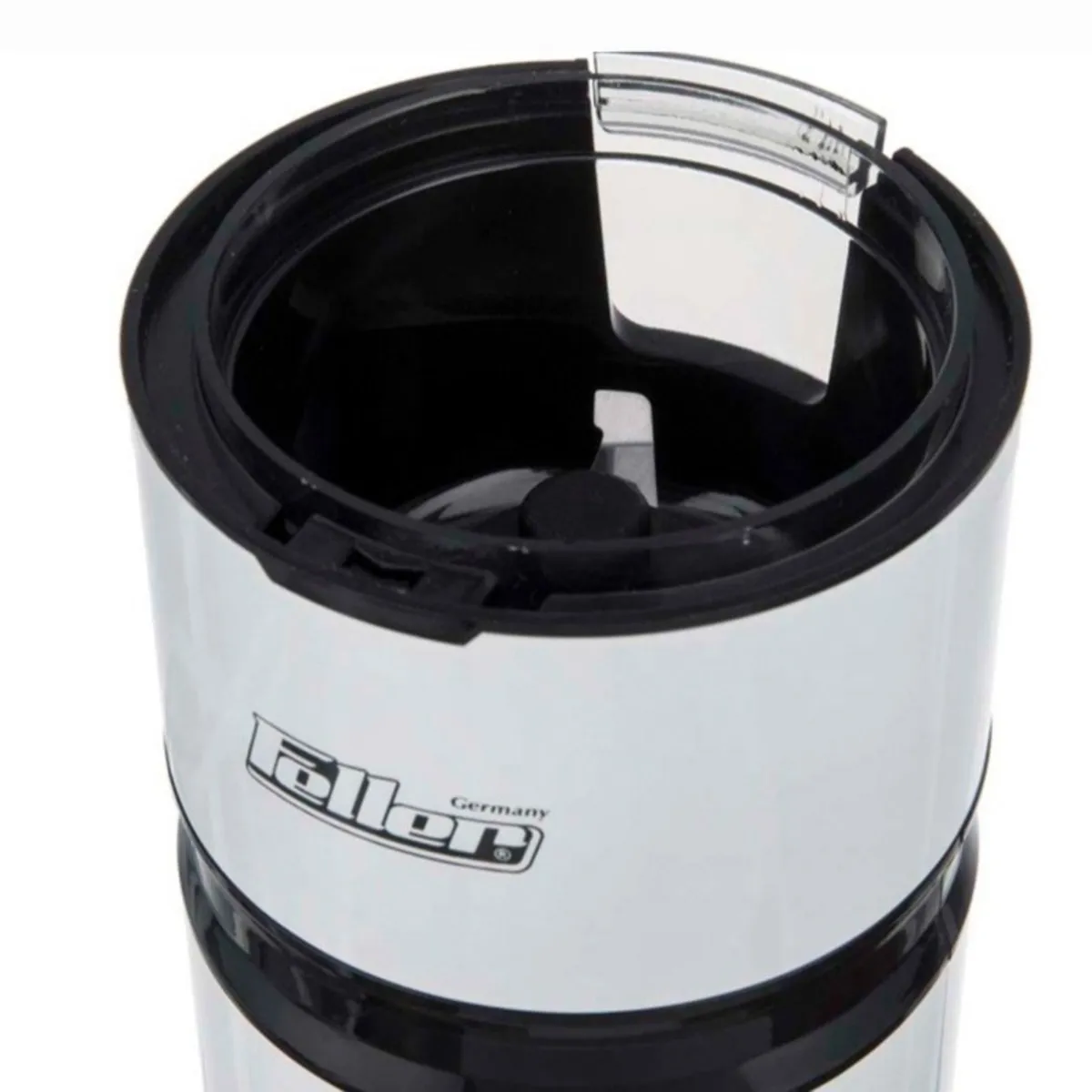 یاب فلر مدل EG151، دستگاهی کوچک با کاربری آسان و قیمتی مناسب است.با ظرفیت 50 گرم که برای مصارف خانگی مناسب است. بدنه این محصول از استیلضدزنگ ساخته شده است. محفظه خردکن آن پلاستیکی است و برخلاف دیگر کالا در این گروه محفظه آن را می توان برای شست و شو خارج کرد. وعملکرد آن به وسیله دکمه فشاری روی درپوش است، انجام می شود.این آسیاب کممصرف که توان مصرفیاش به 150 وات میرسد. و از نکات قابل توجه در مورد این محصول میتوان قابلیت آسیاب دانههای قهوه و انواع ادویه و دانه های خشک و دانه های روغنی را ذکر کرد.که تیغه های استیل ضد زنگ و محفظه جمع آوری سیم برق تکمیل کننده این آسیاب می باشد. فلر از عرضه کنندگان لوازم برقی خانگی است که با ارائهی محصولات باکیفیت و اقتصادی در بازار جای خود را بهخوبی محکم کرده است. این شرکت با خدمات و محصولات خود توانسته مشتریان خود را کاملا راضی نگه دارد آسیاب فلر مدل EG151 بدنه ای استیل دارد و به راحتی می توان به وسیله آن دانههای قهوه، زعفران و انواع ادویه ها را آسیاب و پودر نمود. فلر برای داشتن عملکرد بهتر، تیغه این دستگاه را به صورت استیل ضد زنگ ساخته است. درپوش آسیاب برقی Feller EG151 به صورت شفاف می باشد تا بتوان محتویات داخل آسیاب و میزان خرد شدن را مشاهده کرد. شروع عملکرد آسیاب بسیار ساده می باشد و تنها کافیست دکمه ای را که در بالای دستگاه تعبیه شده را فشار داد و گفتنی است، حداکثر 30 ثانیه برای آسیاب کردن در نظر گرفته شده است. فلر یک شرکت پیشتاز آلمانی در زمینه ارائه انواع لوازم خانگی که شامل ( مایکروویو ، پلوپز ، آرام پز ، آون برقی و … می باشد و از همان ابتدا ، تاکنون با عرضه محصولات با کیفیت و طبق استانداردهها و تکنولوژی های نوین ، جلب رضایت مشتریان را سرلوحه کار خود قرار داده است See more ...
