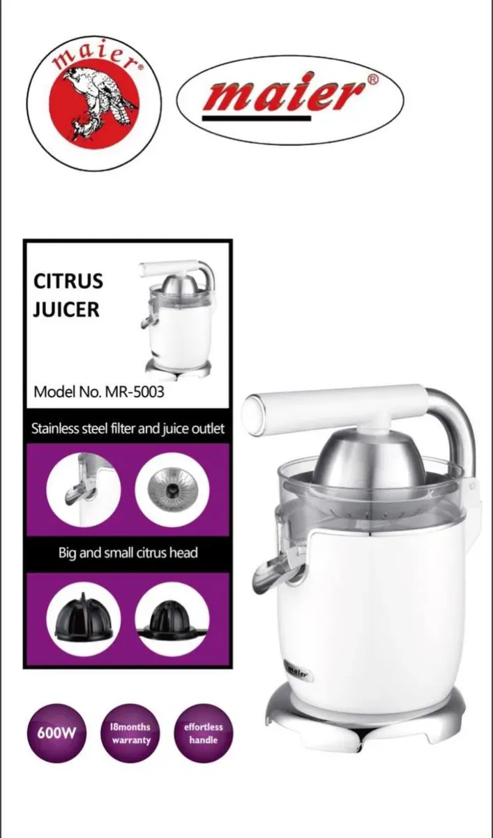 این آب مرکبات گیر از توان 600 وات برخوردار است. یکی از ویژگی های خوب آن این است که همه تجهیزات و وسایل این آب مرکبات گیر ازهم جدا میشوند و افراد میتوانند آن ها را از هم جدا کرده و هرکدام را جداگانه و با دقت بالایی شستشو دهند. پایه این آب مرکبات گیر بدون لرزش و لغزش میباشد و در حین کار با آن هیچ لغزش و لرزشی ایجاد نمیشود.