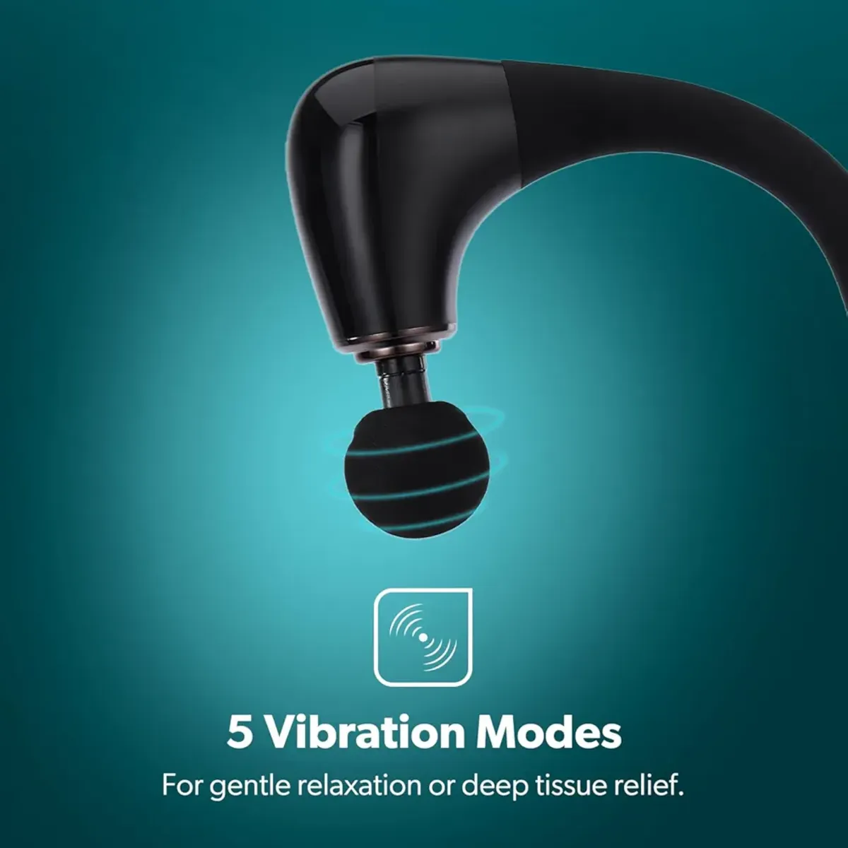 دسته بلند منحنی: این تفنگ ماساژ با یک دسته بلند منحنی ارگونومیک طراحی شده است و به شما این امکان را میدهد که بدون نیاز به کمک، به راحتی به نواحی دشوار مانند کمر و شانه
