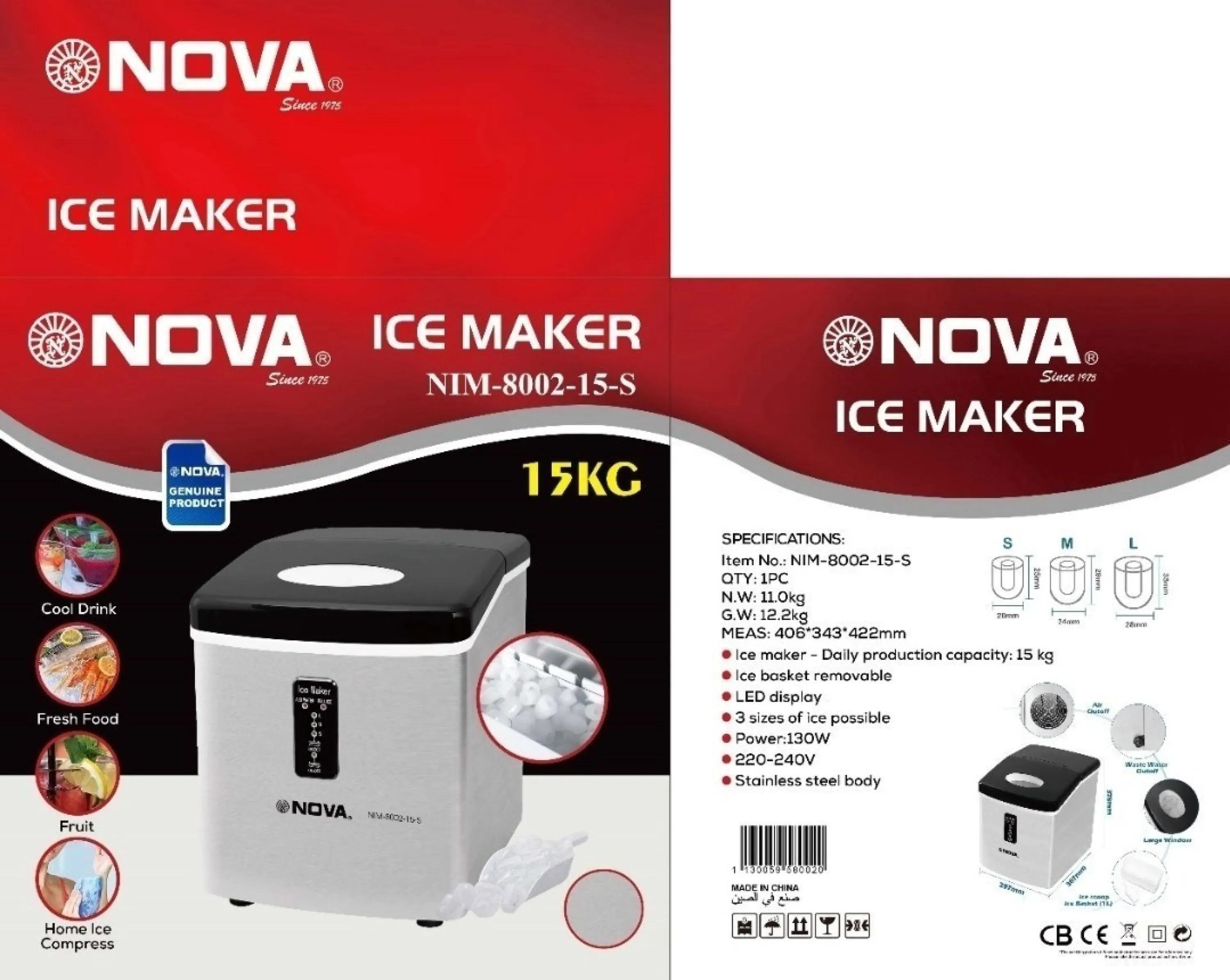 معرفیربرند : نواظرفیت : 15 کیلوگرم در روزتنظیم سایز : قابل تنظیم در سه سایزتوان : 130 واتجنس بدنه : استیل ضد زنگابعاد : 406*343*422 میلیمتربسکت یخ قابل جدا کردن : داردساخت کشور : چین