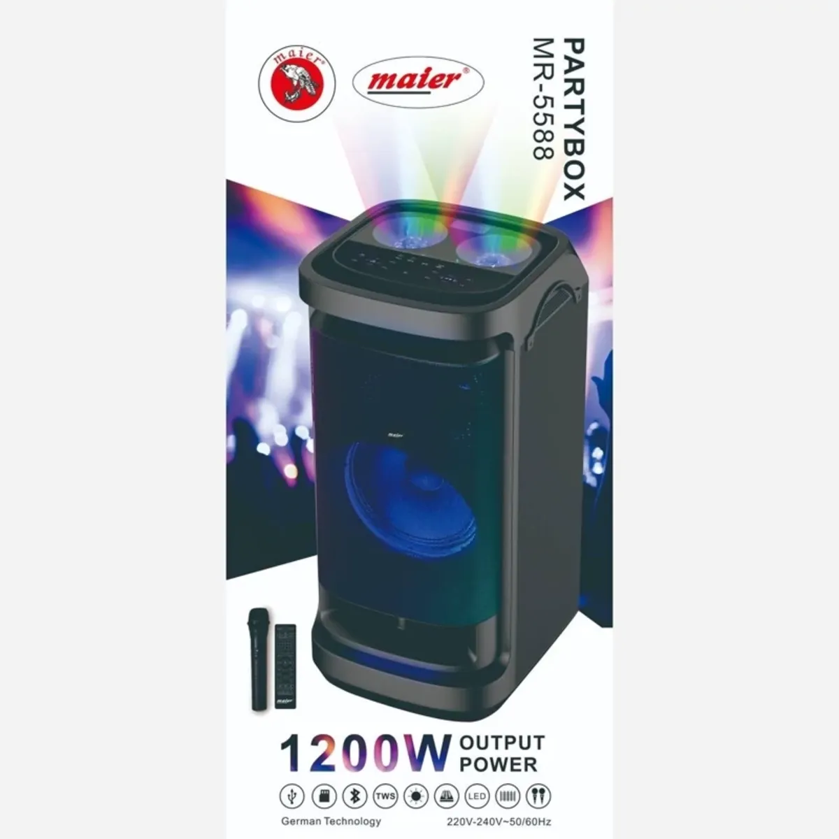 اسپیکر مایر مدل MR-5588 یک انتخاب ایدهآل برای علاقهمندان به موسیقی و مهمانیهای پر انرژی است. این اسپیکر با توان مصرفی 1200 وات، صدای بلندی با کیفیت بالا تولید میکند که برای هر فضای باز یا بستهای مناسب است. از ویژگیهای جذاب این محصول میتوان به وجود میکروفون و کنترل اشاره کرد که امکان کنترل راحتتر و انجام برنامههای گوناگون را برای کاربران فراهم میکند. علاوه بر صدای قدرتمند، اسپیکر مایر MR-5588 با قابلیت رقص نور، فضای مهمانی را با جلوههای نوری زیبا و جذاب تزئین میکند. همچنین، این اسپیکر دارای قابلیت شارژ است که به شما این امکان را میدهد تا بدون نگرانی از باتری، ساعتها از آن استفاده کنید. اگر به دنبال یک اسپیکر با امکانات کامل و کیفیت صدای عالی هستید، مدل MR-5588 مایر گزینهای عالی برای شما خواهد بود.
