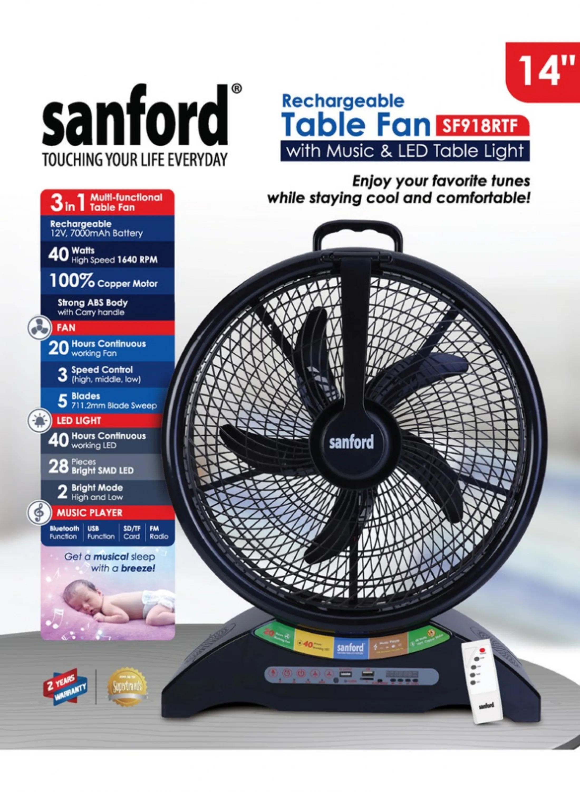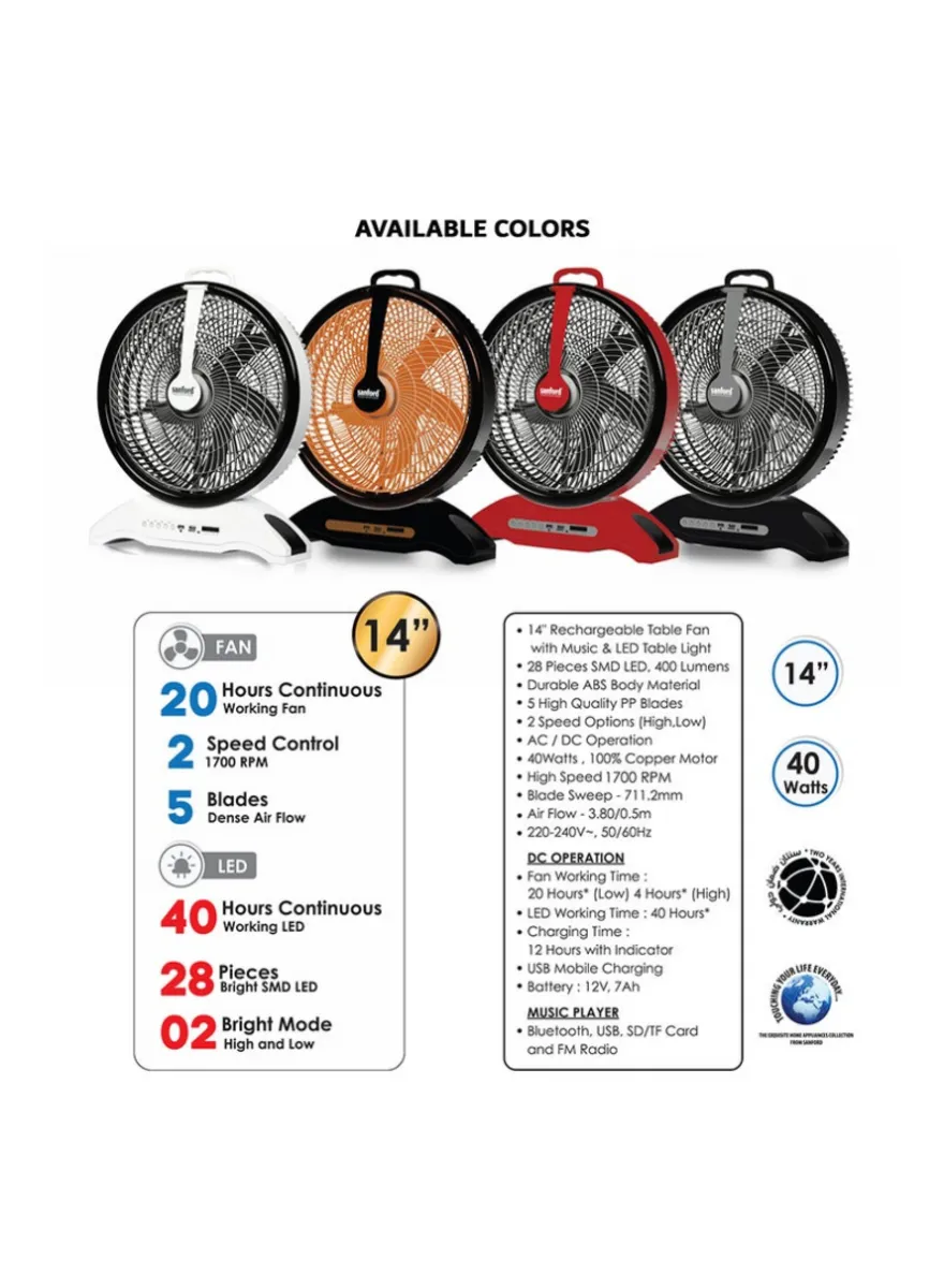 محتویات جعبه: 1 پنکه رومیزی قابل شارژ با ریموت.