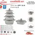 تمامی اجزای این سرویس قابلمه و تابه دارای طراحی نام برند بر روی لبه خود هستند