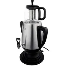 ماور برقی فلر TS 380 از محصولات شرکت فلر (Feller) است که با آن به راحتی می توانید چای یا دم نوش مورد علاقه ی خود را تهیه کرده و برای مدتی طولانی گرم نگه دارید. توان مصرفی این دستگاه 1500 وات میباشد. در جنس بدنه و قطعات این محصول، دقت زیادی شده است. دستگاه به واسطه ی دستگیره های عایق و پلاستیکی، به راحتی قابل استفاده است جنس بدنه ی سماور از شیشه و استیل ضدزنگ میباشد که نه تنها به زیبایی آن می افزاید؛ بلکه این امکان را فراهم می سازد که کاربر میزان آب موجود داخل سماور را مشاهده کند. ظرفیت سماور 4 لیتر میباشد قوری سماور برقی فلر از جنس چینی ساخته شده است. و ظرفیت آن 1 لیتر میباشد. درپوش سماور هم به گونه ای طراحی شده که زمان قرارگیری قوری روی آن، مسیر انتقال بخار باز می ماند و قوری به بهترین شکل گرم نگه داشته می شود ارزش خرید به نسبت قیمت: نوآوری: سماور برقی فلر TS 380 از محصولات شرکت فلر (Feller) است که با آن به راحتی می توانید چای یا دم نوش مورد علاقه ی خود را تهیه کرده و برای مدتی طولانی گرم نگه دارید. توان مصرفی این دستگاه 1500 وات میباشد. در جنس بدنه و قطعات این محصول، دقت زیادی شده است. دستگاه به واسطه ی دستگیره های عایق و پلاستیکی، به راحتی قابل استفاده است جنس بدنه ی سماور از شیشه و استیل ضدزنگ میباشد که نه تنها به زیبایی آن می افزاید؛ بلکه این امکان را فراهم می سازد که کاربر میزان آب موجود داخل سماور را مشاهده کند. ظرفیت سماور 4 لیتر میباشد قوری سماور برقی فلر از جنس چینی ساخته شده است. و ظرفیت آن 1 لیتر میباشد. درپوش سماور هم به گونه ای طراحی شده که زمان قرارگیری قوری روی آن، مسیر انتقال بخار باز می ماند و قوری به بهترین شکل گرم نگه داشته می شود